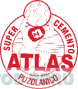El logotipo conformado por la denominación SUPER CEMENTO PUZOLANICO ATLAS escrita en letras características y la figura de un personaje mitológico sosteniendo una figura circular dentro de un círculo pequeño que contiene líneas horizontales, todo dentro de un círculo más grande, en color rojo; conforme al modelo adjunto