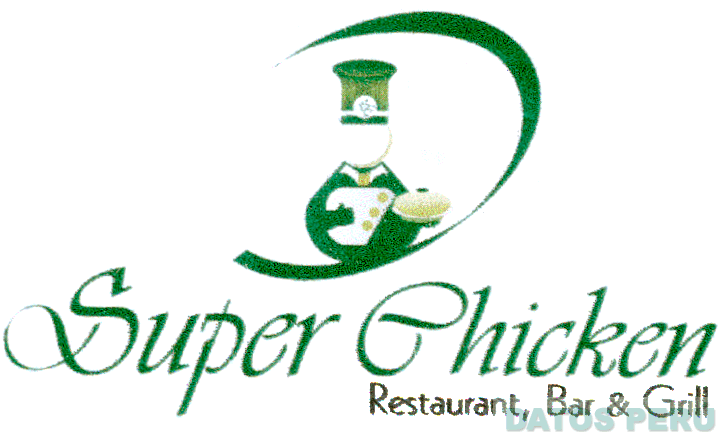 El logotipo conformado por la denominación SUPER CHICKEN (sin reivindicar) escrita en letras características, acompañada por el término RESTAURANT, BAR & GRILL (sin reivindicar) escrita en letras características, y la representación estilizada de un cocinero con una bandeja y gorro encerrado en una figura semi elíptica, todo en los colores verde en distintas tonalidades, negro, blanco y gris; conforme al modelo adjunto