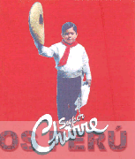 El logotipo conformado por la denominación SUPER CHURRE escrita en letras características y la representación estilizada de un niño, levantando un sombrero, todo en la combinación de colores rojo, beige, blanco, negro y anaranjado; conforme al modelo adjunto
