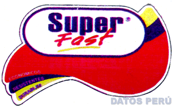 EL LOGOTIPO OVALADO CONTENIENDO LA DENOMINACION SUPER FAST ESCRITA EN LETRAS CARACTERISTICAS Y LA FIGURA DE TRES FRANJAS ONDULANTES, EN LOS COLORES ROJO, AZUL, AMARILLO Y BLANCO, CONFORME AL MODELO ADJUNTO
