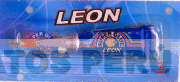 El empaque que contiene la denominación LEON escrita en letras características, debajo la cual aparece la representación estilizada de un chisguete en el cual se aprecia la denominación SUPER GLUE LEON escritas en letras características, donde la denominación SUPER GLUE se encuentra dentro de una figura semicircular, una figura irregular y dos líneas que se extienden a lo largo del chisguete, y demás frases alusivas al producto (sin reivindicar); todo sobre un fondo irregular conformado por una serie de líneas y figuras circulares y una frase alusiva al producto (sin reivindicar); todo en la combinación de colores blanco, azul en diversas tonalidades, rojo, verde, amarillo. anaranjado, celeste en diversas tonalidades, gris, plomo y negro; conforme al modelo adjunto