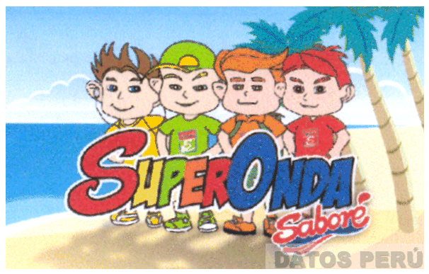 La denominación SUPERONDA y en la parte inferior derecha de ésta la denominación SABORÉ ambas escritas en letras características, todo sobre la representación estilizada de cuatro personajes, una playa y palmeras en la combinación de colores amarillo, anaranjado, rojo, verde, azul, rosado, beige, negro, celeste, marrón y fucsia; conforme al modelo adjunto