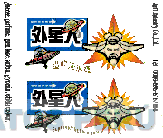 El logotipo conformado por tres figuras chinas dentro de una figura rectangular, la representación caricaturizada de un planeta, una nave espacial y platillo volador, todo en los colores azul, amarillo, rojo, verde, anaranjado, blanco, marrón y rosado; conforme al modelo adjunto