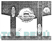 La etiqueta conformada por figuras irregulares y dentro de un círculo se aprecia un paisaje con unas ramas y la denominación SUREÑO escrita en letras características y la figura de un sol; al lado derecho una figura idéntica a la del centro, dos barras paralelas, una horizontal inferior y una figura irregular con rayas verticales en la parte superior; sin reivindicar colores; conforme al modelo adjunto