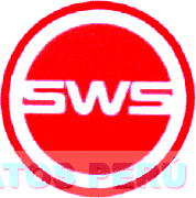 El logotipo conformado por las letras SWS escritas en forma característica en color blanco dentro de una figura circular de color rojo con doble borde en los colores rojo y blanco; conforme al modelo adjunto
