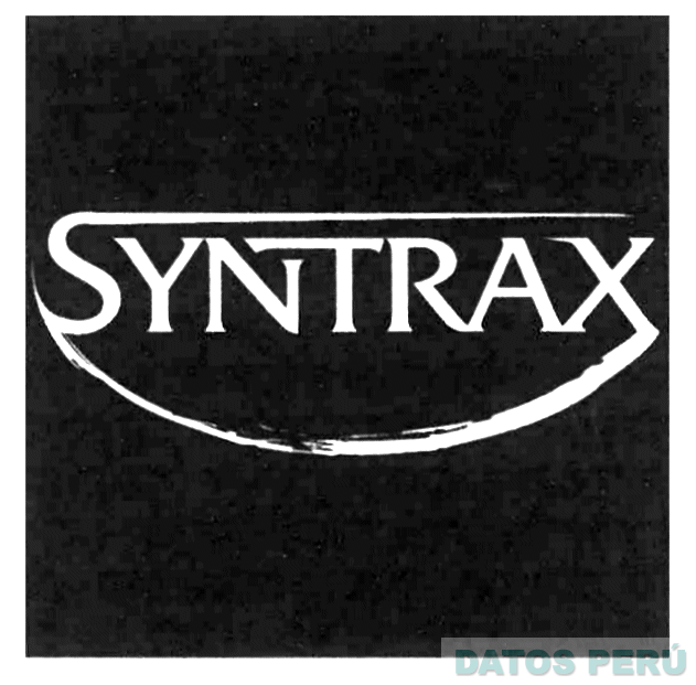 El logotipo conformado por la denominación SYNTRAX escrita en letras características de color blanco y fondo negro en la parte inferior se aprecia un semi-círculo; conforme al modelo adjunto