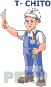 El logotipo conformado en la parte superior por la denominación T-CHITO escrita en letras características y la figura estilizada de un obrero de construcción vestido con overol azul; camisa ploma, botas marrones y casco blanco; se aprecia en el overol un pequeño bolsillo con una regla; en la mano izquierda sostiene una plomada y con la mano derecha una espátula; conforme al modelo adjunto