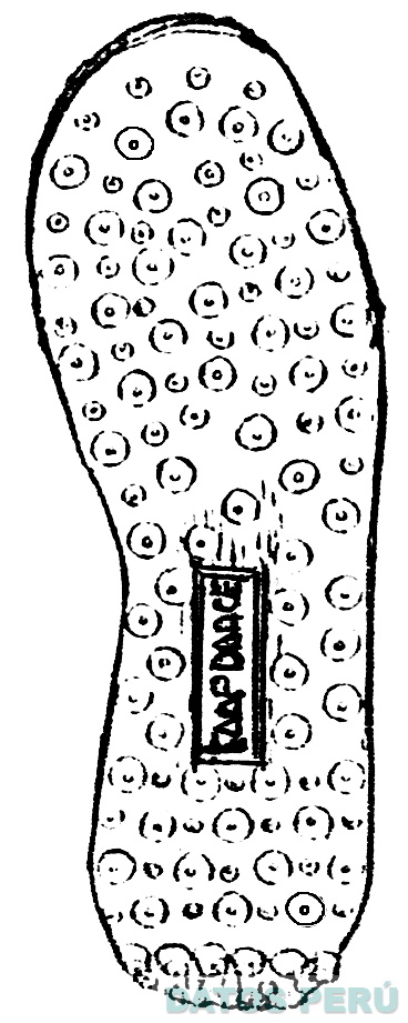 La figura bidimensional de una planta de calzado compuesta por figuras circulares en alto relieve y la denominación TAAP DANCE escrita en letras características; conforme al modelo adjunto