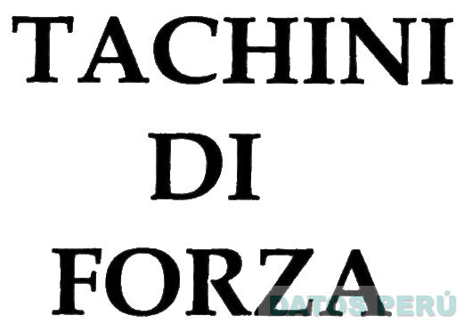 El logotipo conformado por la denominación TACHINI DI FORZA escrita en letras características (sin reivindicar colores); conforme al modelo adjunto.