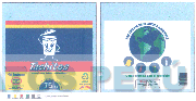 La figura bidimensional conformada por la denominación TACHITOS escrita en letras características y la figura caricaturesca de un tacho, en la parte inferior central la figura estilizada de un semicírculo, todo sobre un fondo de figuras rectangulares de diferentes tamaños y frases alusivas al producto sin reivindicar; en la parte posterior la figura estilizada del planeta tierra que en su parte inferior presenta la figura estilizada de cuatro figuras circulares que en su interior presentan figuras irregulares, todo en la combinación de colores rojo, azul, amarillo y blanco; conforme al modelo adjunto