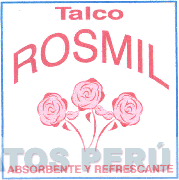 El logotipo cuadrangular conformado por la denominación TALCO ROSMIL escrita en letras características, sobre la representación estilizada de tres rosas y debajo de las cuales se aprecia la denominación ABSORBENTE Y REFRESCANTE (sin reivindicar) escrita en letras características; todo en la combinación de colores rojo en diversas tonalidades, azul y blanco; conforme al modelo adjunto