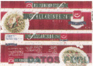 El diseño de envase de tallarines 78 LUCCHETTI conformado por franjas horizontales de color rojo superpuestas por franjas horizontales mas delgadas de color azul, en cuya parte izquierda aparece un plato conteniendo tallarines verdes y en cuya parte derecha aparece el logotipo de LUCCHETTI, todo en los colores