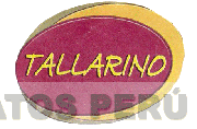 El logotipo conformado por la denominación TALLARINO escrita en letras características dentro de una figura elíptica, todo en colores verde, amarillo y granate; conforme al modelo adjunto