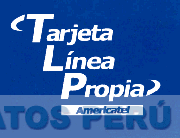 El logotipo conformado por la denominación TARJETA LINEA PROPIA escrita en letras características de color blanco con dos figuras elípticas al inicio y final de la denominación de color blanco, debajo se observa la denominación AMERICATEL escrita en letras características de color azul dentro de un fondo rectangular color blanco, todo sobre una figura cuadrangular color azul; conforme al modelo adjunto