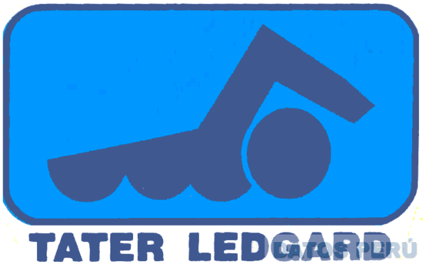 El logotipo conformado por la silueta estilizada de una persona nadando en fondo azul turquesa dentro de una figura rectangular y la denominación TATER LEDGARD escrita en letras características de color azul; conforme al modelo adjunto.