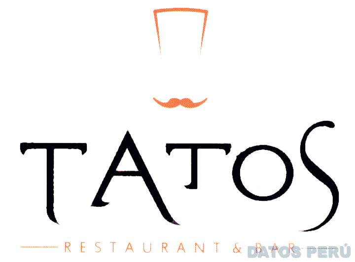 La denominación TATOS RESTAURANT & BAR y logotipo (se reivindica colores), conforme al modelo