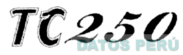 La denominación TC250 escrita en letras y números característicos, en colores negro y blanco; conforme al modelo adjunto