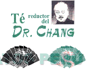 La denominación TÉ REDUCTOR DEL DR. CHANG escrita en letras características en cuya parte superior derecha se aprecia el dibujo del rostro de un hombre y el diseño de unos abanicos con la figura de un dragón; en los colores verde, negro, rojo y blanco; conforme al modelo adjunto