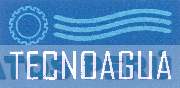 El logotipo conformado por la denominación TECNOAGUA escrita en letras características sobre la cual se aprecian los diseños de una tuerca estilizada y tres rayos ondulantes, todo en los colores azul, celeste y blanco; conforme al modelo adjunto