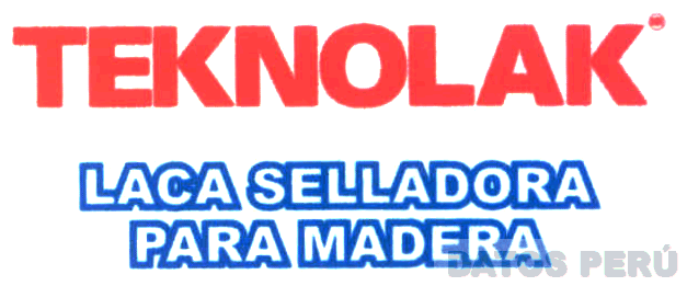 LA ETIQUETA RECTANGULAR CONTENIENDO LA DENOMINACION TEKNOLAK ESCRITA EN LETRAS CARACTERISTICAS DE COLOR ROJO SEGUIDA DE LA FRASE LACA SELLADORA PARA MADERA ESCRITA EN LETRAS CARACTERISTICAS EN COLOR AZUL Y BLANCO; CONFORME AL MODELO ADJUNTO