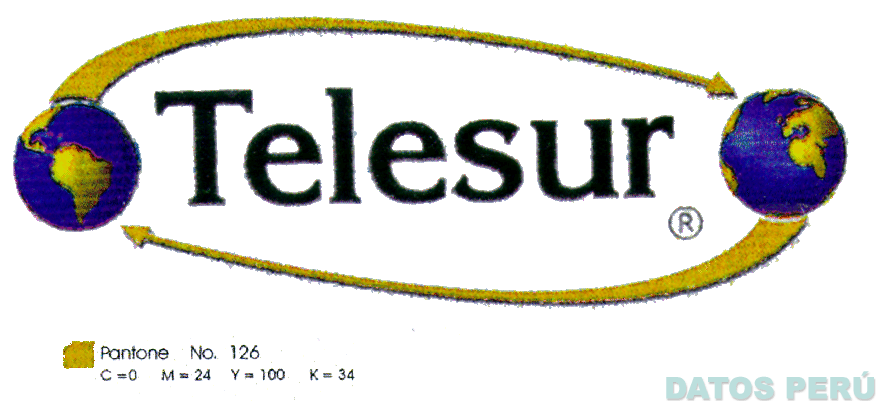 LA DENOMINACION TELESUR ESCRITA EN LETRAS CARACTERISTICAS Y EN LOS EXTREMOS LA FIGURA DE DOS MUNDOS UNIDOS POR FLECHAS ESTILIZADAS; TODO EN LA COMBINACION DE LOS COLORES AZUL Y AMARILLO PANTONE 126; Y TODO CONFORME AL MODELO ADJUNTO,