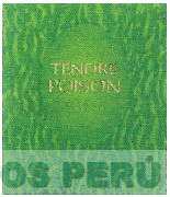 La denominación TENDRE POISON escrita en letras características, dentro de una etiqueta rectangular con fondo estriado que presenta una figura ovoide, todo en los colores verde oscuro, verde claro y dorado; conforme al modelo adjunto