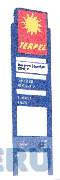 La representación de un monolito de color azul (pantone 281c), sin reivindicar la figura del monolito; conteniendo en la parte superior la denominación TERPEL escrita en letras características y la figura estilizada de un sol en color amarillo (pantone 123 c) sobre fondo rojo (pantone 485 c); conforme al modelo adjunto