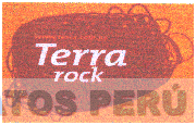 El logotipo rectangular conformado por una figura irregular dentro de la cual se aprecia la denominación WWW.TERRA.COM.PE TERRA ROCK escrita en letras características, en la combinación de colores blanco, anaranjado (pantone 158) y rojo (pantone 187); conforme al modelo adjunto