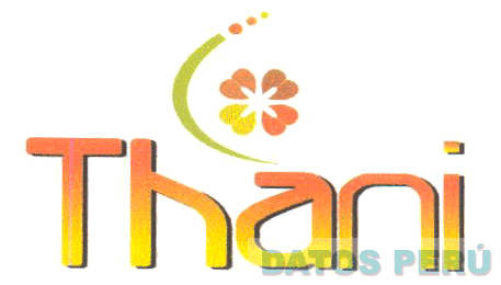 El logotipo conformado por la denominación THANI escrita en letras características con la figura estilizada de una flor y una línea curva, todo en colores verde, marrón, amarillo y anaranjado; conforme al modelo adjunto