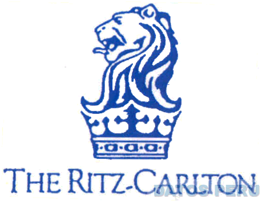 La denominación THE RITZ-CARLTON escrita en letras características y sobre ella la figura formada por una corona con el perfil de la cabeza de un león, todo en color azul; sin reivindicar derechos exclusivos sobre la partícula RITZ, independientemente de la denominación THE RITZ-CARLTON; conforme al modelo adjunto