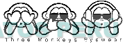 El logotipo conformado por la denominación THREE MONKEYS EYEWEAR escrita en letras características y el diseño estilizado de tres monos, donde el primero aparece cubriéndose los ojos, el segundo aparece con lentes oscuros y cubriéndose la boca y el tercero aparece con lentes oscuros cubriéndose los oídos con unos audífonos; sin reivindicar colores; conforme al modelo adjunto