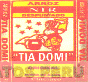 El logotipo conformado por la denominación ARROZ NIR DESPUNTADO (sin reivindicar) TIA DOMI APROX 50 KILOS CHICLAYO (sin reivindicar APROX 50 KILOS CHICLAYO) escrita en letras características, acompañada de la figura de una persona, una olla de arroz y seis estrellas, a los costados se aprecia la denominación ARROZ SUPERIOR (sin reivindicar) TIA DOMI escrita en letras características, todo en los colores rojo y amarillo; conforme al modelo adjunto