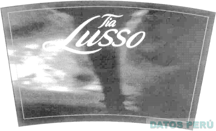 La etiqueta trapezoidal conteniendo la denominación TIA LUSSO escrita en letras características sobre un fondo difuminado; conforme al modelo adjunto