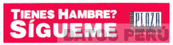 LA DENOMINACION TIENES HAMBRE? SIGUEME, ESCRITA EN LETRAS CARACTERISTICAS, SEGUIDA POR EL LOGOTIPO CARACTERISTICO JOCKEY PLAZA SHOPPING CENTER, TU PUNTO DE ENCUENTRO, TODO DENTRO DE UNA FIGURA RECTANGULAR, EN LA COMBINACION DE LOS COLORES ROJO, BLANCO, AZUL Y NARANJA, CONFORME AL MODELO ADJUNTO,