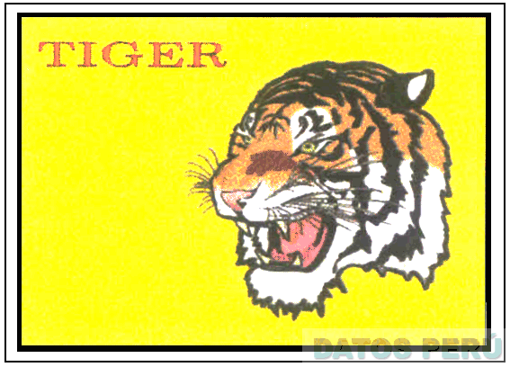 La denominación TIGER y la figura de la cabeza de un tigre, en los colores negro, amarillo, rojo, marrón claro y blanco; conforme al modelo adjunto