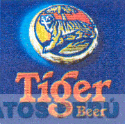 LA ETIQUETA CON LA DENOMINACIÓN TIGER BEER ESCRITA EN LETRAS CARACTERÍSTICAS SOBRE LA CUAL SE APRECIA LA REPRESENTACIÓN DE UN TIGRE Y UNA PALMERA EN UN CÍRCULO, COLORES ANARANJADO, AZUL, VERDE, AMARILLO Y CELESTE; CONFORME AL MODELO ADJUNTO