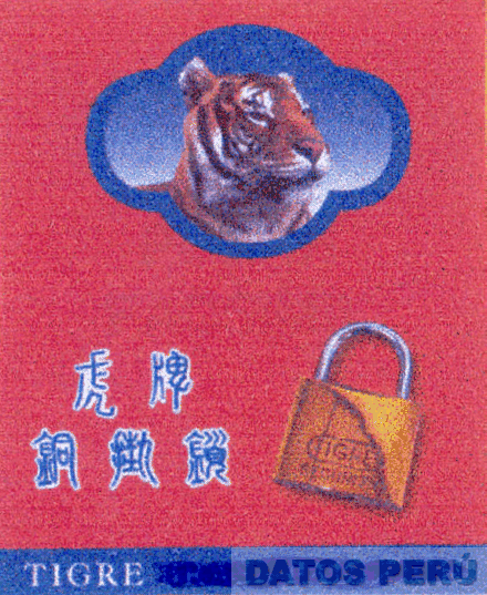 LA ETIQUETA RECTANGULAR CONTENIENDO LA REPRESENTACIÓN ESTILIZADA DE UN TIGRE AL INTERIOR DE UNA FIGURA GEOMÉTRICA IRREGULAR, EN LA PARTE INFERIOR DE ÉSTA SE OBSERVAN CINCO CARACTERES CHINOS Y LA REPRESENTACIÓN ESTILIZADA DE UN CANDADO EN EL QUE SE OBSERVA LA DENOMINACIÓN TIGRE SECURITY ESCRITA EN LETRAS CARACTERÍSTICAS, EN LA PARTE INFERIOR SE OBSERVA LA PALABRA TIGRE ESCRITA EN LETRAS CARACTERÍSTICAS, TODO EN LOS COLORES ROJO, AZUL, BLANCO, AMARILLO, NEGRO, LILA Y MARRÓN; CONFORME AL MODELO ADJUNTO