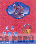LA ETIQUETA RECTANGULAR CONTENIENDO LA REPRESENTACIÓN ESTILIZADA DE UN TIGRE AL INTERIOR DE UNA FIGURA GEOMÉTRICA IRREGULAR, EN LA PARTE INFERIOR DE ÉSTA SE OBSERVAN CINCO CARACTERES CHINOS Y LA REPRESENTACIÓN ESTILIZADA DE UN CANDADO EN EL QUE SE OBSERVA LA DENOMINACIÓN TIGRE SECURITY ESCRITA EN LETRAS CARACTERÍSTICAS, EN LA PARTE INFERIOR SE OBSERVA LA PALABRA TIGRE ESCRITA EN LETRAS CARACTERÍSTICAS, TODO EN LOS COLORES ROJO, AZUL, BLANCO, AMARILLO, NEGRO, LILA Y MARRÓN; CONFORME AL MODELO ADJUNTO