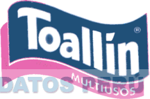 La denominación TOALLIN escrita en letras blancas características, dentro de un rectángulo ondeado de color azul y un reborde rosado con la denominación multiusos, conforme al modelo