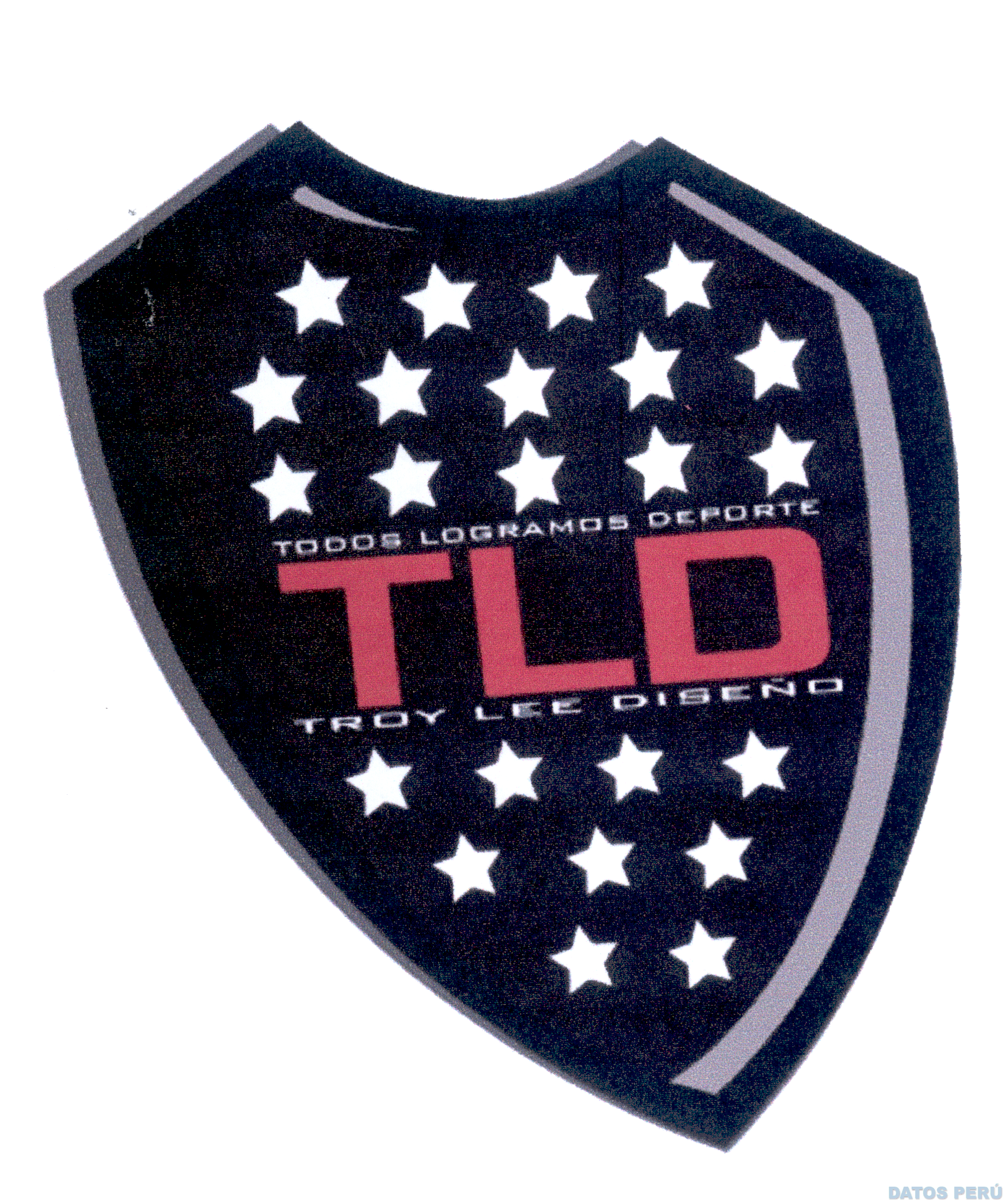 La denominación TODOS LOGRAMOS DEPORTE TLD TROY LEE DISEÑO y logotipo (se reivindica colores), conforme al modelo
