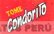 La denominación Tome Condorito escrita en letras características y en el fondo la representación estilizada de gotas; en colores amarillo, blanco y rojo, conforme al modelo adjunto