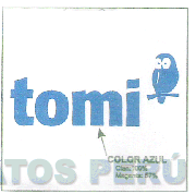El logotipo conformado por la denominación TOMI escrita en letras características, al lado superior derecho se aprecia la figura estilizdaa de un buho; todo en colro azul (cian;100%; magenta