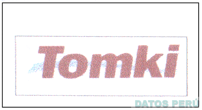 LA ETIQUETA RECTANGULAR CONTENIENDO LA DENOMINACION TOMKI ESCRITA EN LETRAS CARACTERISTICAS CONFORME AL FACSIMIL ADJUNTO