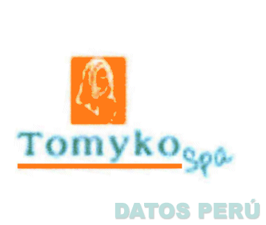El logotipo conformado por la denominación TOMYKO SPA escrita en letras características, en donde la palabra TOMYKO se encuentra subrayada; en la parte superior se aprecia la figura estilizada del busto de una mujer dentro de una figura rectangular; todo en la combinación de colores anaranjado, blanco y verde; conforme al modelo adjunto