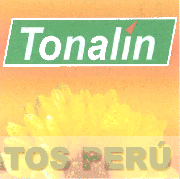 El logotipo conformado por la denominación TONALÍN escrita en letras características y sobre la letra I se aprecia una tilde en forma triangular; todo dentro de una figura rectangular; en la parte inferior se aprecia la figura de una flor; en los colores blanco, vede, amarillo y anaranjado; conforme al modelo adjunto