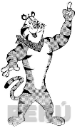 El diseño caricaturizado de un tigre sonriente y de pie, que lleva puesto un pañuelo en el cuello con la denominación TONY escrita en letras características, y con la extremidad superior izquierda levantada; conforme al modelo adjunto