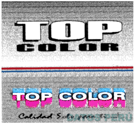 LA DENOMINACION TOP COLOR ESCRITA EN LETRAS CARACTERISTICAS DE COLOR BLANCO Y NEGRO, DEBAJO DOS LINEAS HORIZONTALES DE COLOR ROJO Y AZUL Y EN LA PARTE INFERIOR SE REPITE LA DENOMINACION TOP COLOR CON SOMBRA AZUL Y FUCSIA, TODO SOBRE FONDO PLOMO; CONFORME AL MODELO ADJUNTO,