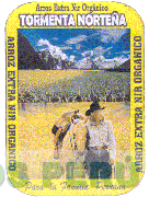 El logotipo conformado por la denominación ARROZ EXTRA NIR ORGÁNICO TORMENTA NORTEÑA PARA LA FAMILIA PERUANA escrita en letras características, alrededor de una figura rectangular que contiene la figura de una mujer con un caballo sobre un fondo conformado por un paisaje, todo en los colores amarillo, azul, blanco, negro, verde oscuro y marrón; conforme al modelo adjunto