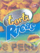 El logotipo conformado por la denominación TORTI RICAS escrita en letras características, la representación de una figura geométrica que lleva la palabra TORTI junto a ella, en la parte inferior está la palabra RICAS, asimismo, se aprecia figuras de tortillas de maíz frito en hojuelas, en la parte superior e inferior del nombre y demás leyendas alusivas al producto y en la parte superior derecha se aprecia una figura ovalada que contiene la denominación LAUREL escrita en letras características, todo en los colores azul, blanco, celeste, plomo, amarillo, anaranjado, negro y verde; conforme al modelo adjunto