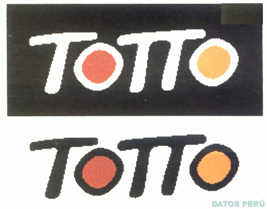 La denominación TOTTO TOTTO escrita en letras características, la primera palabra es de color blanco y se encuentra dentro de un rectángulo de color negro colocada sobre la segunda palabra de color negro, además el interior de la vocal O que comprenden ambas palabras está cubierta por los colores marrón la primera y anaranjado la segunda; conforme al modelo adjunto
